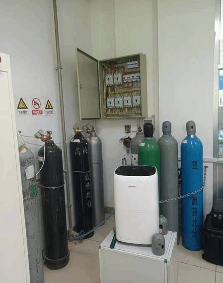7.4114(安全员:刘晓宏老师)实验室内气瓶摆放混杂,具有极大安全隐患。