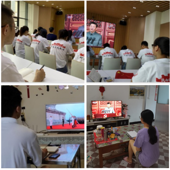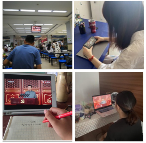 公司班子成员、教师党员及员工党员代表在文汇楼B段301会议室和雁塔校区教学八楼集中收看了大会实况。全体员工党员、员工干部及毕业生同学在宿舍和家中自行收看。