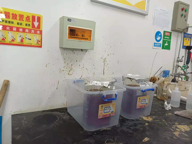 4)铬酸洗液缺少防护装置,建议加装防护罩或托盘(已整改,硝酸洗液已经倒入废液桶,铬酸洗液已经放在整理箱中);