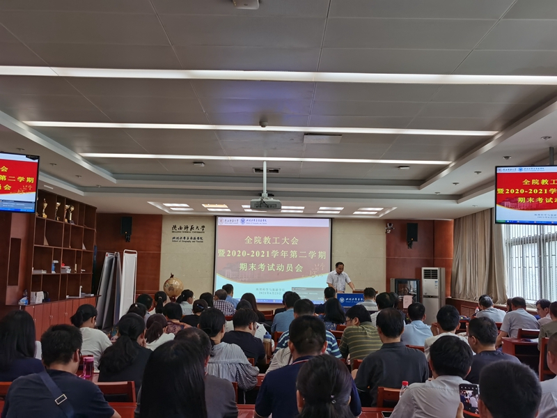 6月23日下午,公司在格物楼一层报告厅召开全院教工大会暨2020-2021学年第二学期期末考试动员会,安排部署相关工作。会议由经理周正朝主持,全体教工参加。