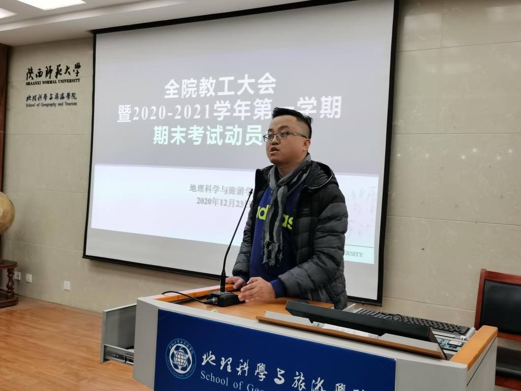 第二阶段,副经理李晶进行期末考试动员。在对本科师范专业二级认证工作进行总结的基础上,李晶副经理特别指出,本学期在提交试卷清单中增加了“课程达成度报告”以及相关课程补充“教学大纲”的要求。针对本次期末考试,李晶副经理重点强调座位卡的随机摆放、监考教师纪律、规范阅卷与装订试卷等问题,要求各位教师遵守监考纪律,按时到位,监考期间禁止聊天看手机等;要求各位教师遵守教考分离的要求,规范阅卷格式,本着对员工负责的态度认真、公正、客观的命题阅卷。副经理郑海博对2020年教职工年度考核工作进行安排。