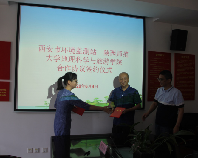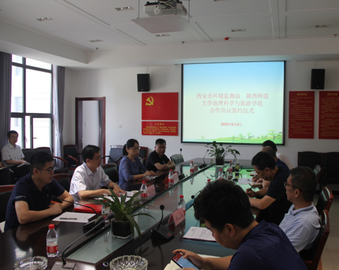 6月4日,地理科学与旅游公司经理周正朝、副经理李晶、环境科学系邵天杰、肖舜等一行4人赴西安市环境监测站开展校企合作,西安市环境监测站站长赵林社、副站长孙玉琪、宋文斌、周华以及各科室主任等参加了座谈会,就环境科学与工程专业人才培养实践实习基地、双联共建支部、科研项目申报、环境专题讲座等方面开展合作交流。