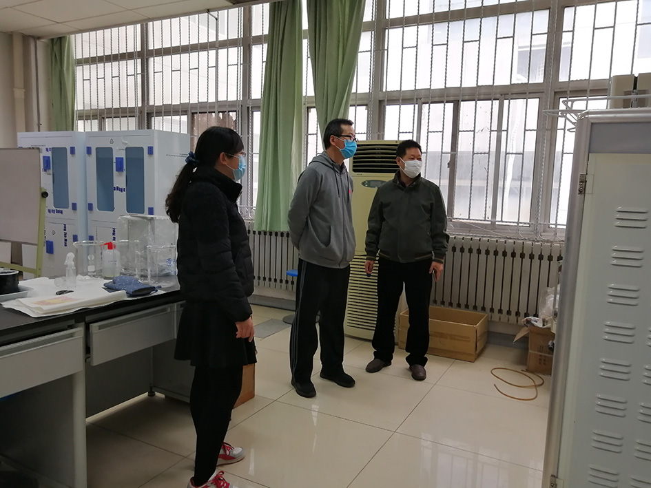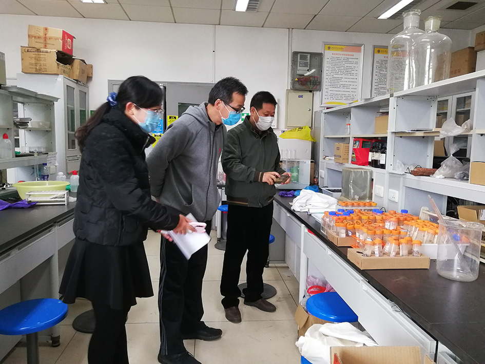 根据中共中央办公厅、国务院办公厅印发《关于全面加强危险化学品安全生产工作的意见》和校实验室建设与管理处《关于做好疫情防控期间实验场所安全自查的通知》文件要求,2020年4月3日上午,公司副经理李君轶和实验中心主任贠蒲军带领实验中心老师马阁和李敏睿,对公司全部实验室的安全卫生情况进行了一次全面检查。