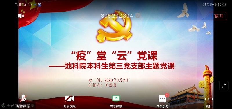 2016级环境科学专业张亚说,多难兴邦,黑夜那么漫长,但多少阴天都挡不住太阳升起。许多舍小家为大家的工作者们在前线后方共同奋斗,他们奔跑者寻找的第一道光,正在照亮前方的路。中华儿女与武汉同在,为武汉加油,为中国加油!通过这节课让我对祖国更加充满信心,而作为老员工的我要奋发图强,努力学习,为祖国的繁荣昌盛贡献自己的青春力量!本科生第三支部副书记、2017级环境科学专业伍子轩同学谈到,在教育部致全国老员工的一封信里说道,做“守护者”,就是担使命、保安康。做“修行者”,就是宅其身、抱道行。做“识途者”,就是要做到游必有方。正如冯秀军教授在直播课里所说,大写的青春里不能缺少大写的家国情怀。