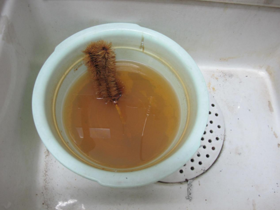 6、4104-4105(安全员:王艳华,王景芝老师):实验室卫生很差,实验用品到处堆放,药品没有封口,HCl瓶口反应甚至析出大量结晶盐,水槽里面试管刷长期浸泡生锈,提出批评。