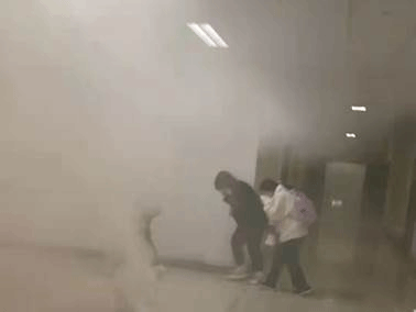 警报信号响起,各应急小组遵从指挥、协调一致,迅速到达指定岗位,指挥楼内师生用湿毛巾捂住口鼻,低头弯腰呈一路纵队有序逃离,同时仔细排查室内人员数量,确保不遗漏一名人员,将大家有序疏散到安全地点。