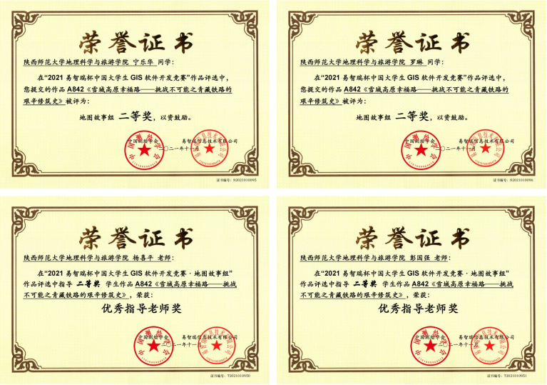 公司2019级二年级本科生宁乐华、罗琳,在青年教师彭国强和杨喜平的指导下,利用大二暑假时间,完成了作品《雪域高原幸福路——挑战不可能之青藏铁路的艰辛修筑史》,荣获地图故事组二等奖,彭国强老师和杨喜平老师被评为优秀指导老师。