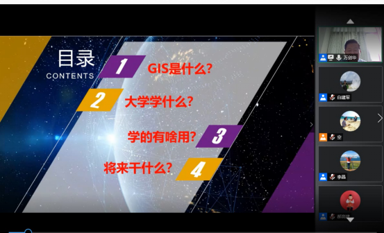 第二阶段,地信专业的白建军、李晶、张福平、薛亮及严建武等老师,和同学进行了交流,就同学们关注的热点问题进行了解答。极大地激发了同学们学习地信专业的热情,也坚定了同学们通过专业学习解决国家重大需求,为社会发展做贡献的决心。