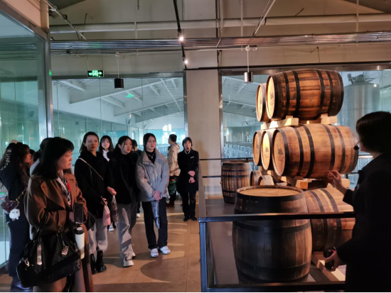在参观过程中我们有幸邀请到张裕瑞那城堡酒庄内的工作人员为我们介绍葡萄酒制作的全部过程。整个葡萄酒制作包括采摘、制作、发酵、存储、包装等一系列过程,一路参观,让我们感受到葡萄酒文化的魅力。