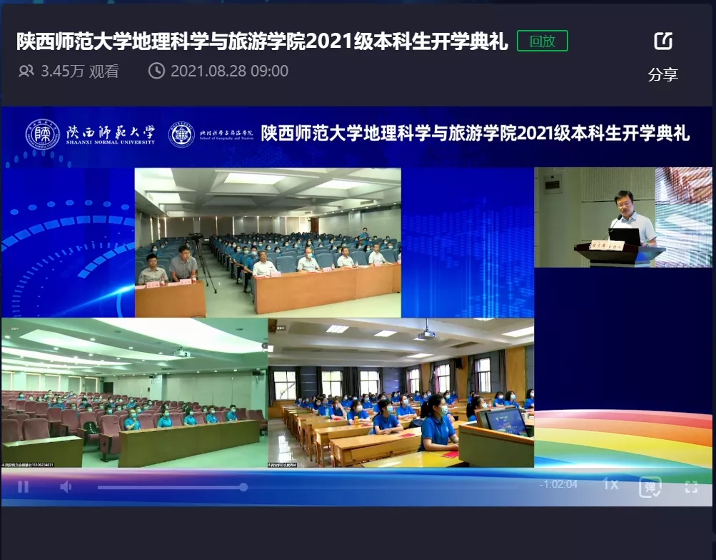 365英国上市官方网站党委书记王明道,经理李君轶,副经理段克勤、李晶、郑海博等公司领导出席会议,地理科学系主任岳大鹏、环境科学系副教授王利军、地理信息科学系副主任刘宪锋、旅游管理系副主任张春晖,教师代表延军平教授,分团委书记张思豆,本科生辅导员白克阿力·艾山、张钰超、张娜以及全体2021级本科生参加大会,新生家长通过网络直播的形式观看开学典礼。会议由365英国上市官方网站党委副书记代晓飞主持。