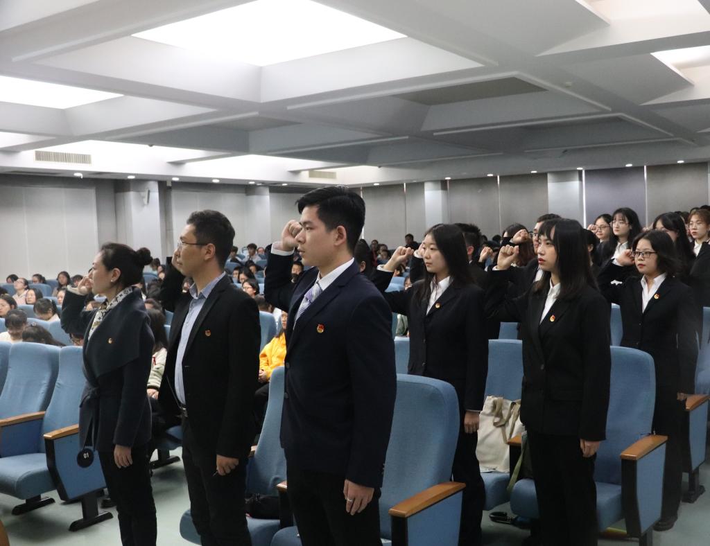 团委副书记刘南江带领全体员工干部庄严宣誓:为把地科院员工会建成一个凝聚、青春、担当的集体而努力奋斗!