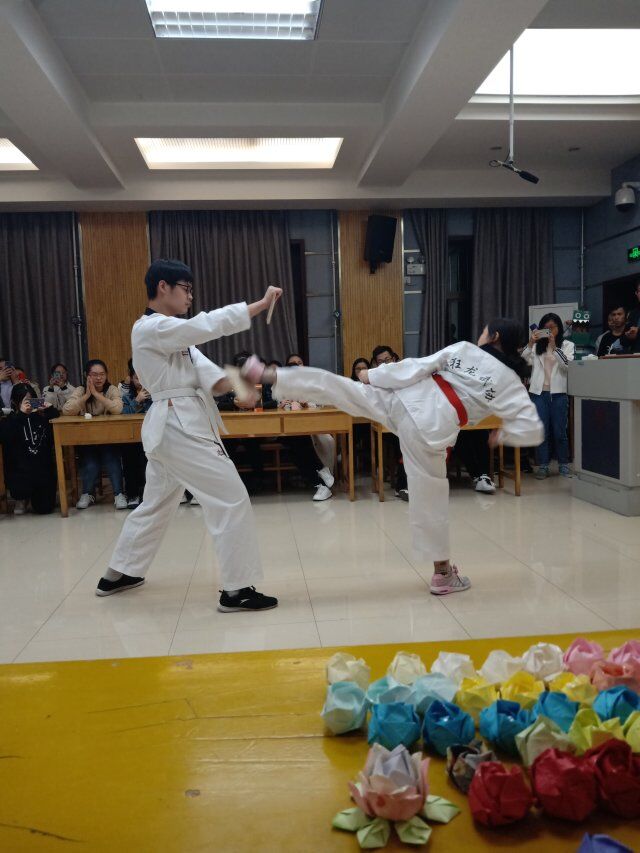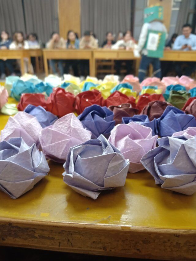 活动主要分为三部分,内容充实,衔接得当。活动现场参加人员热情高涨,参与度极高。活动第一部分是兄弟社团的节目展示,雏玉散文社同学带来了诗朗诵《沁园春•雪》,感情充沛,引人入胜;狂龙武协依次展示了散打、跆拳道、双截棍,引来场上观众的阵阵喝彩欢呼;蓝草吉他社同学的一首《再见青春》弹唱,勾起同学们对青春的畅想;紫云相声社的演员们的用心表演,带动整个会场的氛围,同学们欢声笑语,掌声不断。第二部分是老员工礼仪社的环保时装展示及设计者的设计理念介绍,与第一部分穿插进行。伴随着音乐的节奏,礼仪社的同学们走出了自己的风采,充分展示出环保时装的魅力,激发同学们对环保事业的兴趣、宣传了绿色环保的理念。第三部分是现场教学:川崎玫瑰的手工制作。讲台上有手工部的部员教学,并有PPT的步骤展示,场下有多位部员现场指导,最后大部分同学们都叠出了自己的第一朵玫瑰花。
