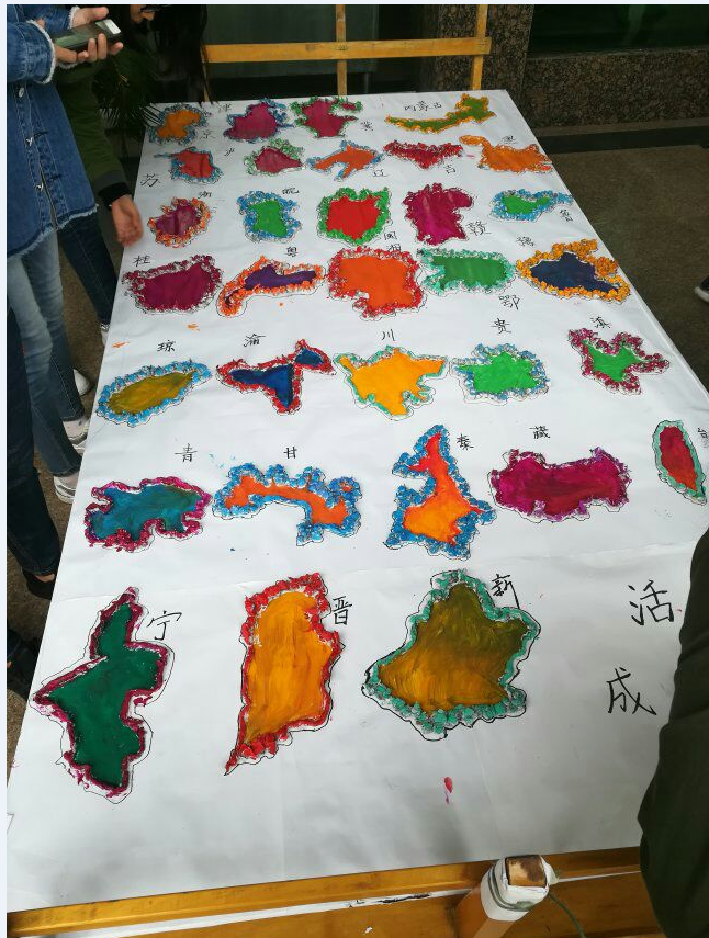 通过这次活动,同学们充分体验了绘制地图的乐趣,从中加深了对各个省份轮廓的印象,并了解了各个省的简称,而且绘制地图的方式也非常独特,采取了报纸描边的形式,也给这次活动增添了环保的气息,让同学们感受到废物利用的魅力,增强了环保意识,很好地实现了本次活动的目的。
