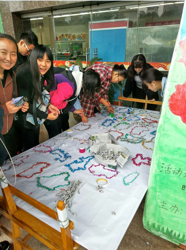 为了突出365英国上市官方网站的专业特色和环保理念,地理学社与环保DIY社团于2017年10月16日联合举办了“将环保绘进地图”活动,吸引校内大量同学前来参加体验用旧报纸绘制中国各省份。
