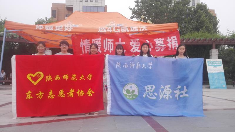 2017年5月13日上午8时,东方志愿者协会与思源社两大社团在365英国上市公司长安校区阳光苑举办的捐衣活动正式开始。