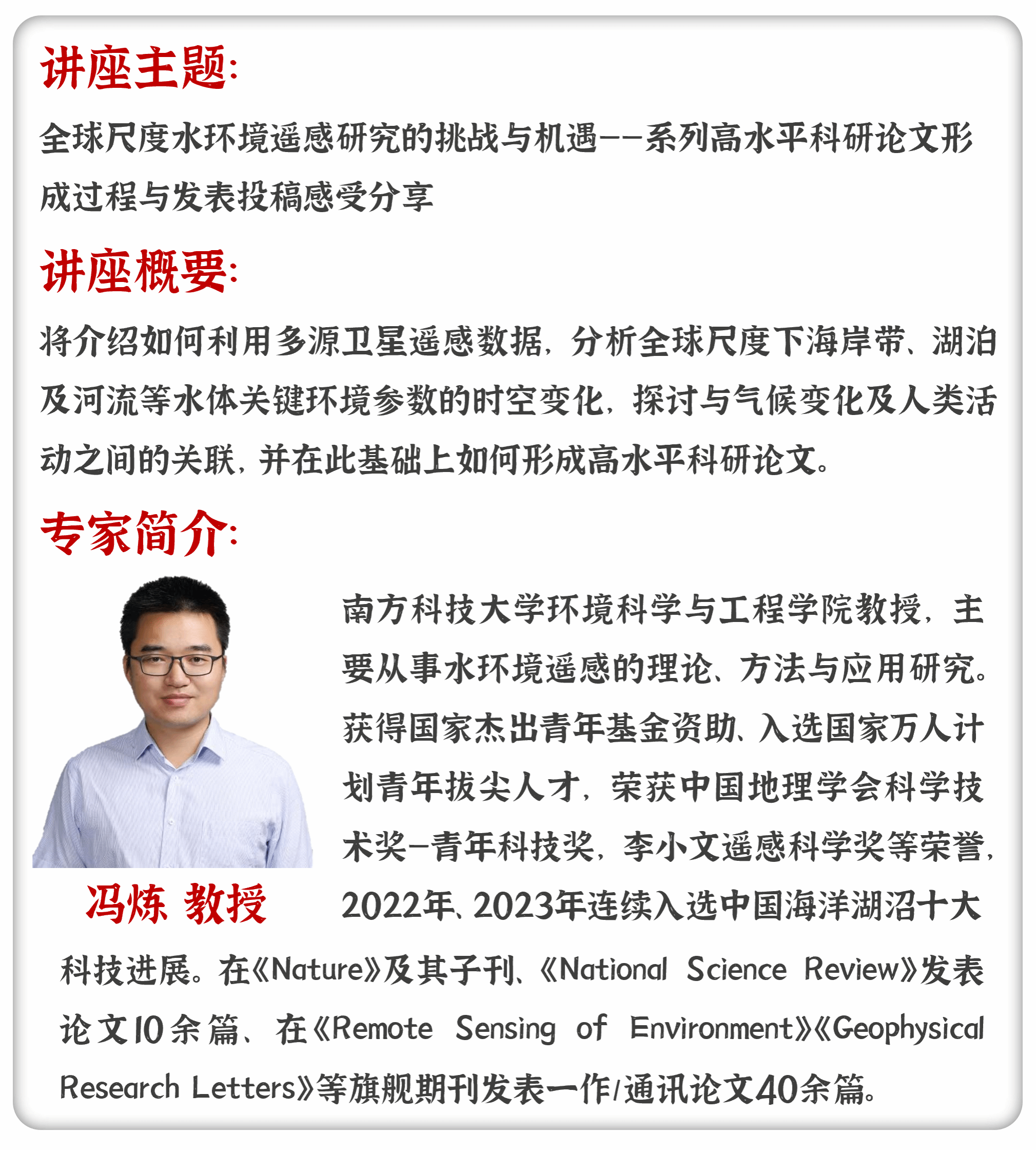 诚挚邀请您参加首届“资源赋能 创新有我”高水平科研能力提升与交流专题论坛,与领域专家共同探讨学术前沿、交流创新成果、促进多元合作。让我们携手并进,深耕自然资源研究,共同推动科学创新与社会经济发展。