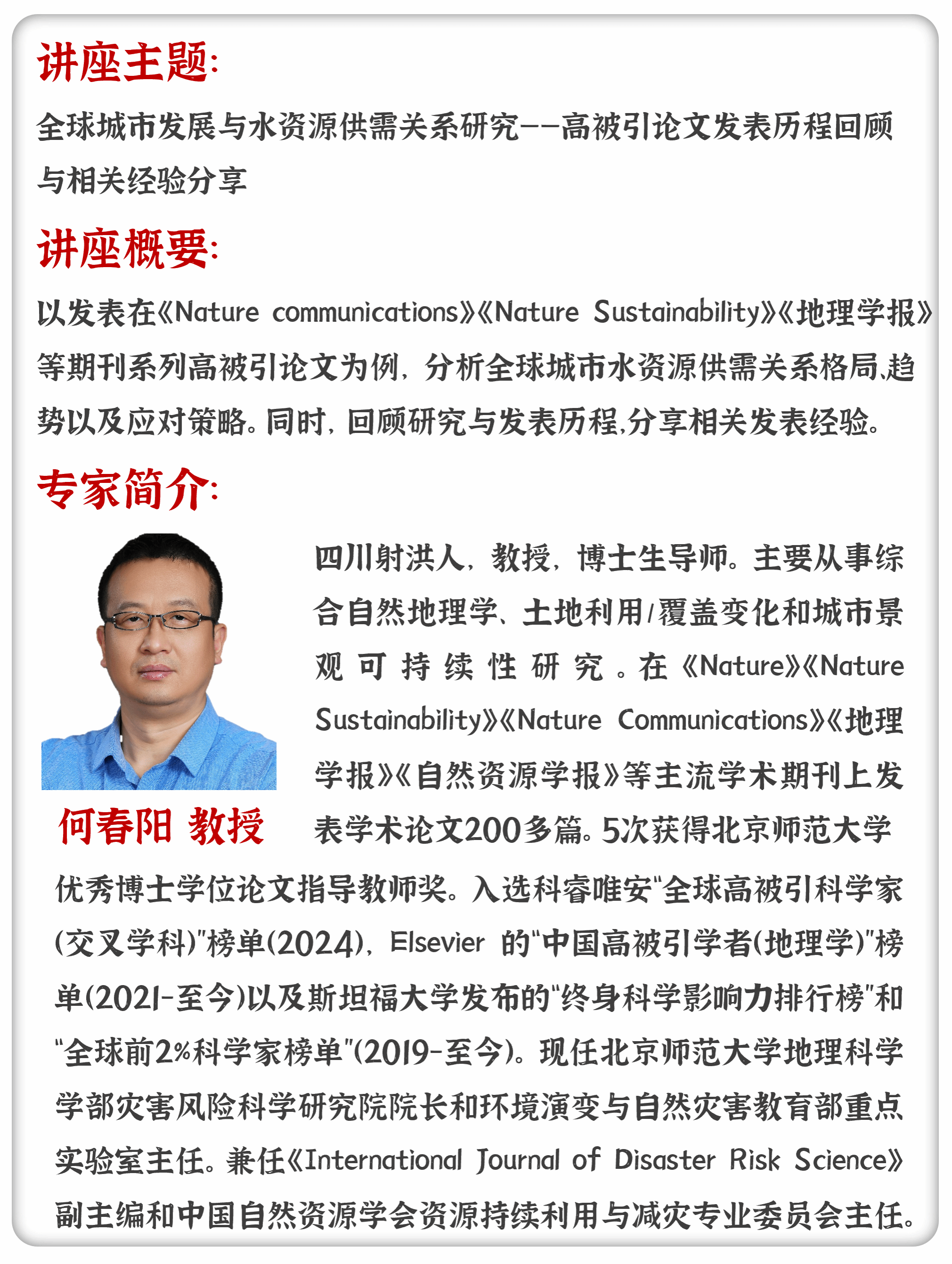 北京师范大学地理科学学部教授