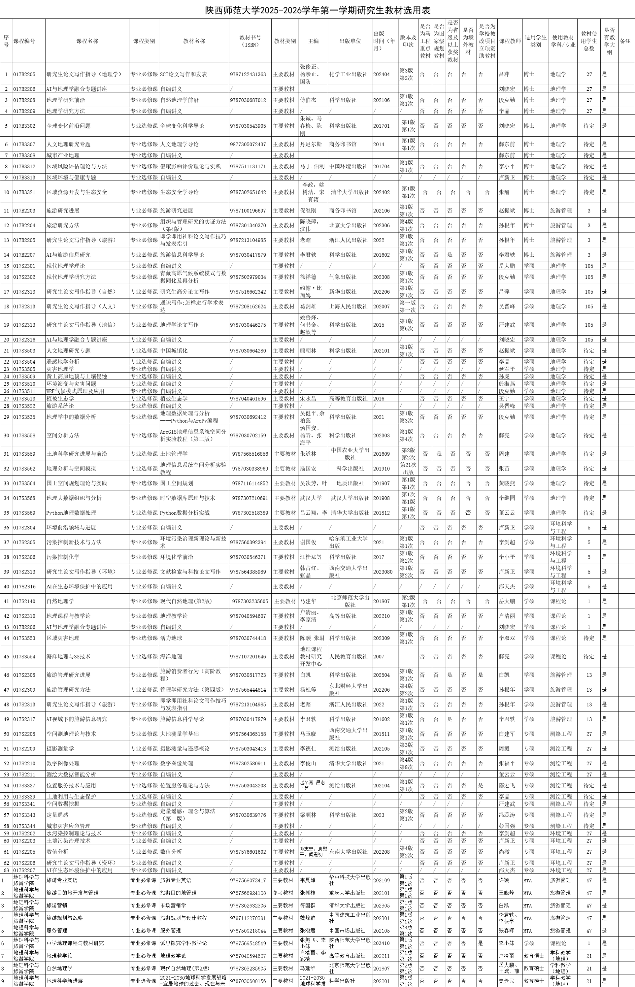 根据研究生院《关于做好2025-2026学年第一学期研究生教材选用工作的通知》要求,现将365英国上市官方网站2025-2026学年第一学期研究生教材选用情况予以公示。