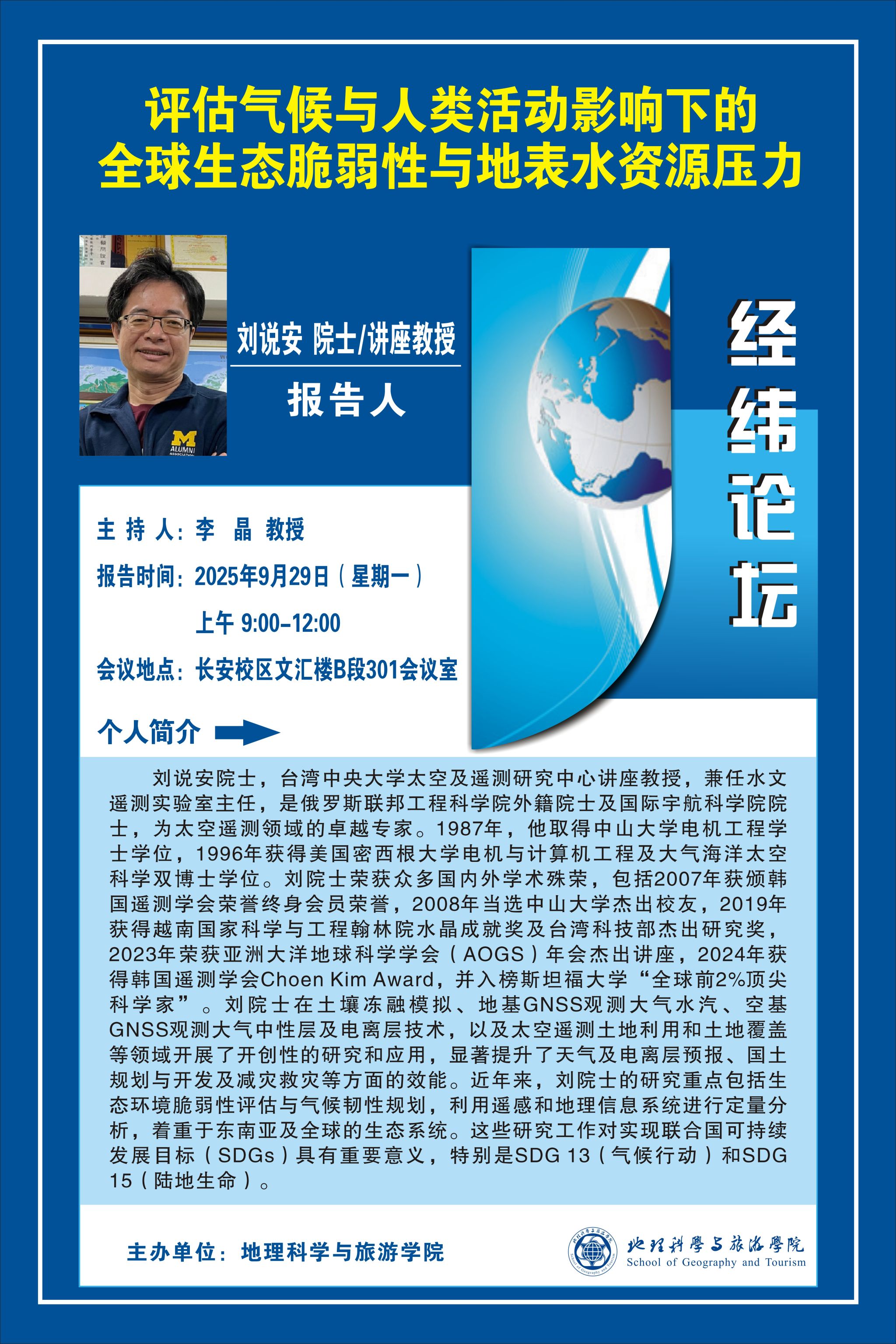 经纬论坛--评估气候与人类活动影响下的全球生态脆弱性与地表水资源压力