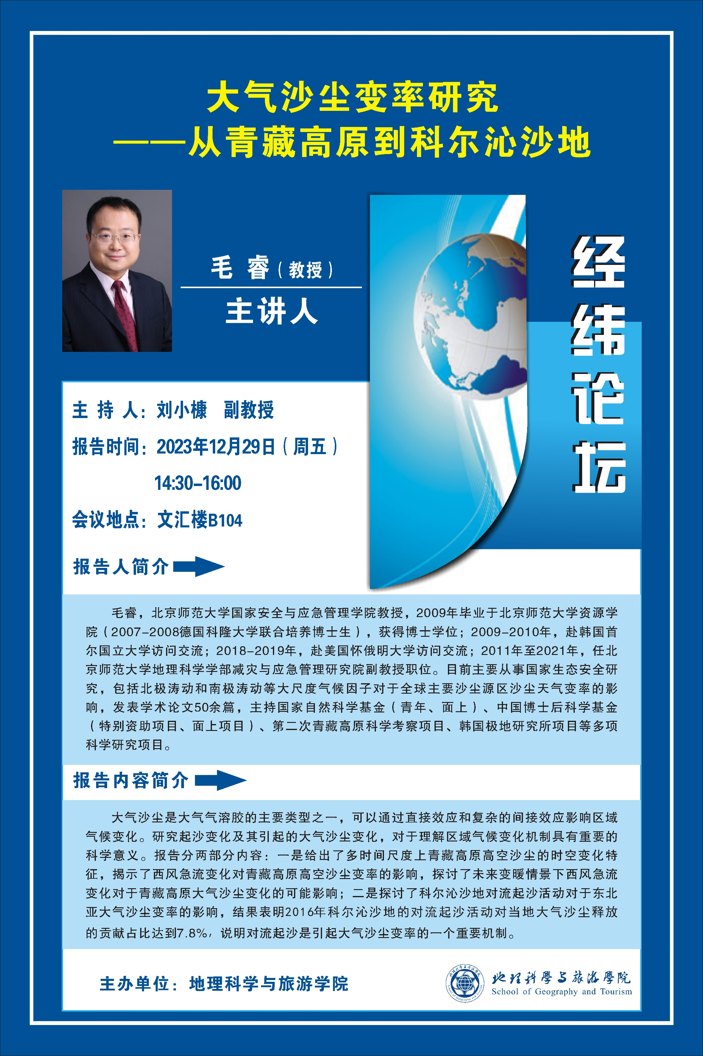 经纬论坛--大气沙尘变率研究-从青藏高原到科尔沁沙地